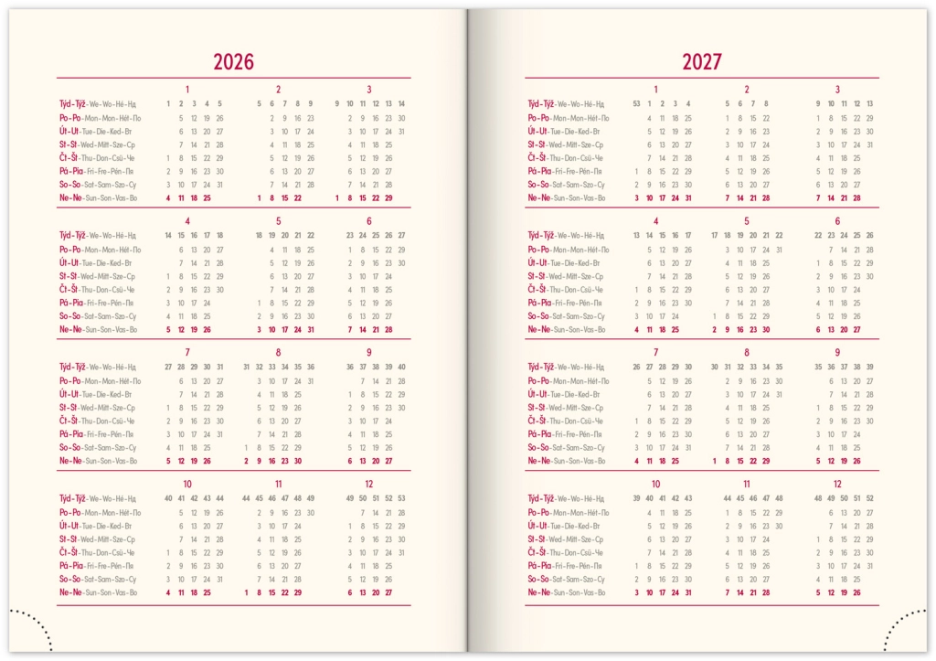 - Kalendarium rozpoczynające się już w grudniu 2025