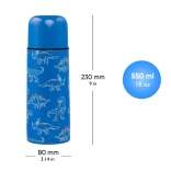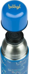 Termobutelka Dino marki BAAGL oferuje wyjątkowy design inspirowany aktualnymi trendami, który współgra z innymi produktami dla uczniów młodszych klas szkoły podstawowej. Wyposażona jest w zakręcaną pokrywkę, którą po odkręceniu można użyć jako kubek do picia.
