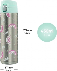 Połącz styl i funkcjonalność z tą termobutelką, która oferuje proste otwieranie i zintegrowany silikonowy ustnik. Dzięki pojemności 450 ml doskonale sprawdzi się w codziennym użytkowaniu. Butelka jest dostępna w kilku zabawnym wzorach, które łatwo dopasujesz do pozostałego wyposażenia szkolnego.