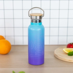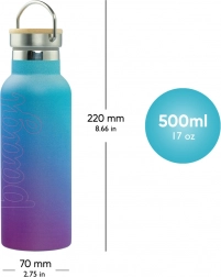 Termobutelka wykonana jest z dwuwarstwowej stali nierdzewnej, co zapewnia doskonałą izolację termiczną. Utrzymuje ciepłe napoje do 12 godzin i zimne do 24 godzin. Nie nadaje się do zamrażarki, zmywarki ani kuchenki mikrofalowej.