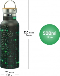 Designerska termobutelka z metalową zakrętką i logo BAAGL, która utrzymuje napoje gorące do 12 godzin, a chłodne i orzeźwiające do 24 godzin.