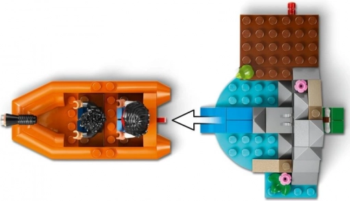 Zbuduj szopę z pomostem, wyślij łódkę na wyprawę za pomocą wyrzutni i pozwól T-rexowi zniszczyć konstrukcję – a potem łatwo zbuduj ją na nowo.