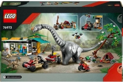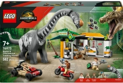 Przeżyj szybką akcję i emocjonujące pościgi z zestawem LEGO Jurassic World Pościg za tytanozaurem i raptorem (76973). Zestaw zawiera dużego tytanozaura z ruchomą głową, szyją i ogonem, raptora z otwieraną paszczą, trzy minifigurki oraz bogate akcesoria, w tym pojazd terenowy z przyczepą, motocykl, drona i modułową stację. Idealny dla dzieci od 7 lat, które kochają przygody z dinozaurami.