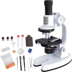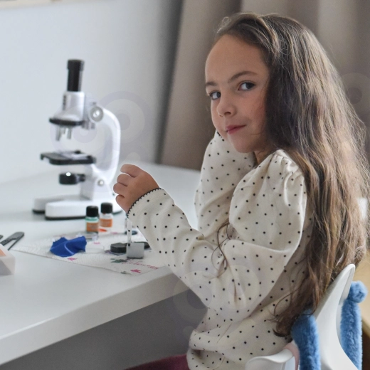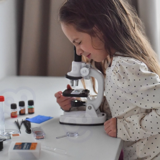 Ten kompaktowy mikroskop to doskonały wybór na pierwsze domowe laboratorium. Dzięki trzem poziomom powiększenia 200x / 600x / 1200x, wbudowanemu oświetleniu LED oraz obrotowemu filtrowi barwnemu dzieci łatwo zobaczą struktury komórek roślinnych, włókien oraz drobne detale małych próbek.