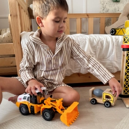 Autentyczne wrażenia dzięki efektom świetlnym i dźwiękowym sterowanym przyciskami na kabinie. Dzieci łatwo wcielą się w rolę operatora prawdziłej maszyny.