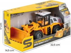 Model wykonany jest z wysokiej jakości materiałów i ma duże, wytrzymałe gumowe koła dla stabilności. Otwierana maska umożliwia dostęp do „silnika”, a zdejmowane przednie narzędzie zwiększa różnorodność zabawy (możliwość wymiany z innymi maszynami). Zabawa ładowarką rozwija małą i dużą motorykę, wyobraźnię, kreatywność oraz myślenie logiczne.