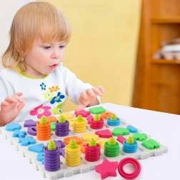 - Dzięki różnorodności kształtów i kolorów dziecko z entuzjazmem układa