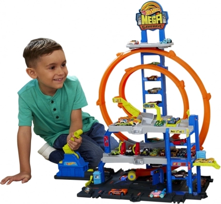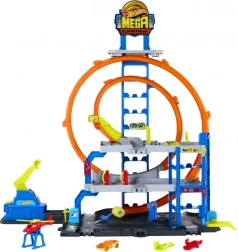 Maxi garaż Hot Wheels City zapewnia dynamiczną zabawę na trzech poziomach – od myjni na parterze, przez ręczną windę, aż po start z najwyższej kondygnacji. Wyrzutnia wysyła auta w podwójną pętlę, a przełączniki decydują, na które piętro trafi pojazd. Świetny do samodzielnej i wspólnej zabawy.