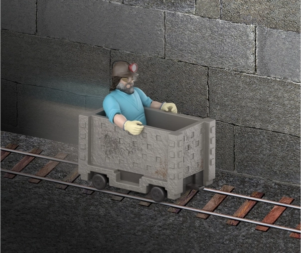 - Jeżdżący wózek górniczy do dynamicznych scen zabawy
