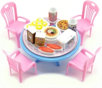 - Meble dla lalek – stół i krzesła z dodatkami