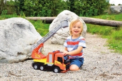Model wykonano z trwałego tworzywa i wyposażono w mocne metalowe osie kół (6 mm), co gwarantuje długą żywotność także podczas zabawy w ogrodzie czy w trudniejszym terenie. Zabawka jest łatwa w obsłudze, ma szczegółowo opracowaną kabinę i płynnie jeździ dzięki wielu osiom.