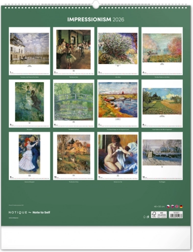 Poznawaj arcydzieła impresjonizmu każdego dnia dzięki naszemu kalendarzowi ściennemu na rok 2026. Edgar Degas, Paul Cézanne, Auguste Renoir i inni światowej sławy artyści ożywią Twoje ściany swoimi ikonicznymi dziełami.