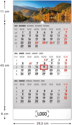 Praktyczny kalendarz ścienny z układem trzymiesięcznym, listwą wskazującą z ruchomym suwakiem oraz przydatnym rocznym przeglądem. Oferuje kalendarium ze słowackimi imionami i świętami światowymi na eleganckim, ciemnoniebieskim tle – idealny do planowania w domu i biurze.