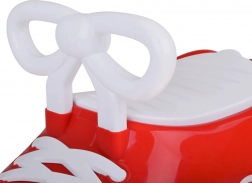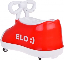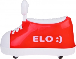Czerwony jeździk trampkowy Elo wyróżnia się niepowtarzalnym wyglądem, który natychmiast przyciąga uwagę. Stylowe wykonanie w formie dużego czerwonego trampka z napisami ELO :) i OLE :) wywoła uśmiech na każdej twarzy.