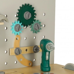 Zestaw narzędzi dla dzieci zawiera mini narzędzia do ćwiczenia precyzyjnej motoryki i bezpieczne środowisko, w którym dziecko nauczy się umiejętności potrzebnych do pracy z narzędziami. Z tym zestawem dziecko nauczy się rozróżniać narzędzia i zrozumie zasady pracy z nimi.