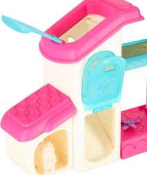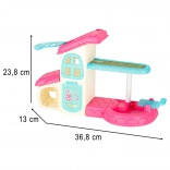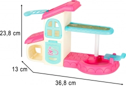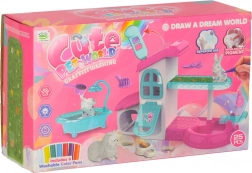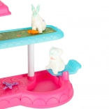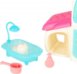Ten unikalny zwierzęcy domek oferuje interaktywny SPA salon z basenikiem i prysznicem, idealny do pielęgnacji małych figurek zwierząt, takich jak piesek, kotek czy króliczek. Zawiera także szóstkę kolorowych flamastrów do kreatywnych modyfikacji oraz zabawy z włosami, które dają miejsce na kreatywną zabawę.