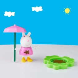 Ta figurka Świnki Peppy zapewnia dzieciom nieskończoną zabawę. Dzięki temu zestawowi mogą bawić się w przygody w kałuży i błocie, co jest idealne dla małych fanów serialu. Każde opakowanie zawiera potrzebne akcesoria, takie jak podstawka, parasol plażowy i parasol przeciwdeszczowy.