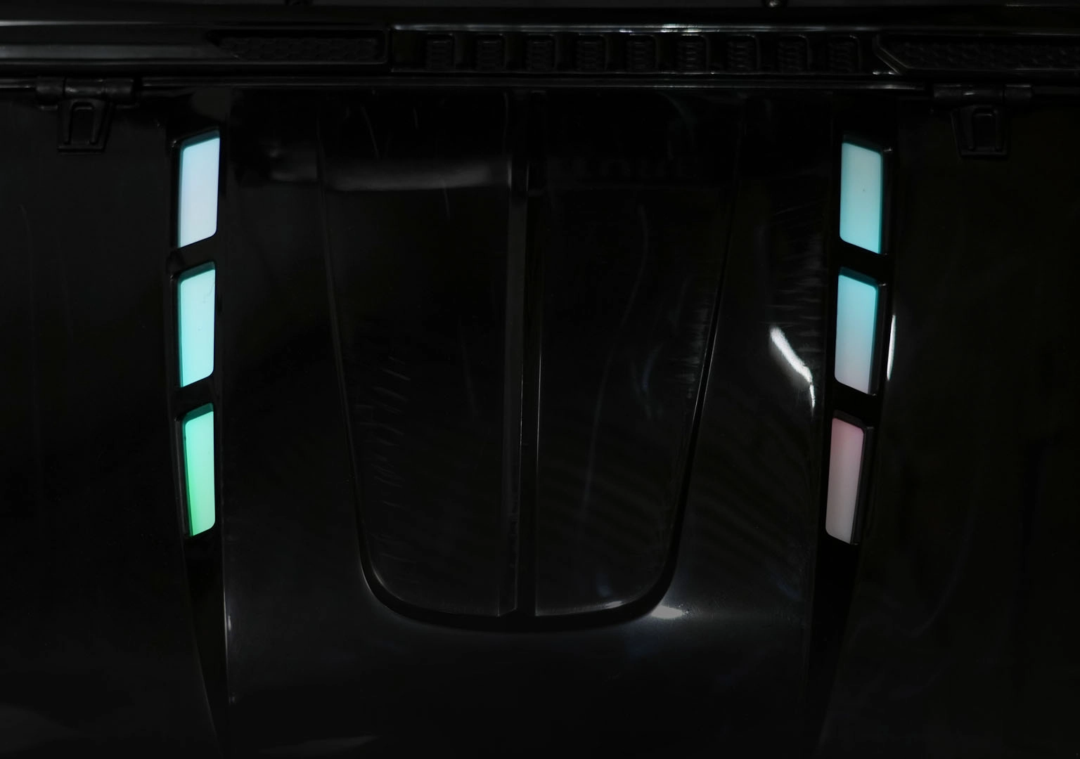 Panel audio z USB/AUX/MP3/Bluetooth, dźwięki i klakson na kierownicy, przednie światła LED oraz podświetlana maska dla stylu i lepszej widoczności.