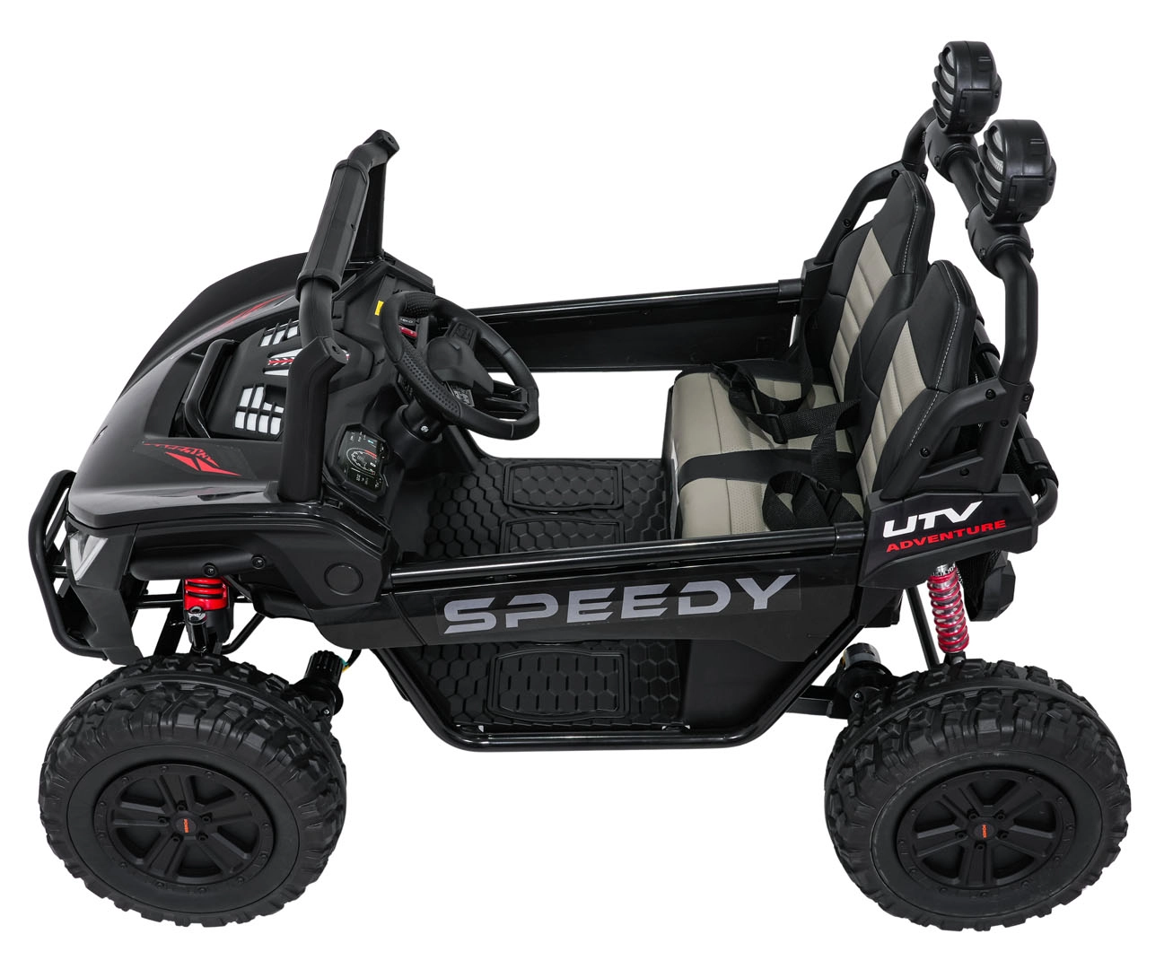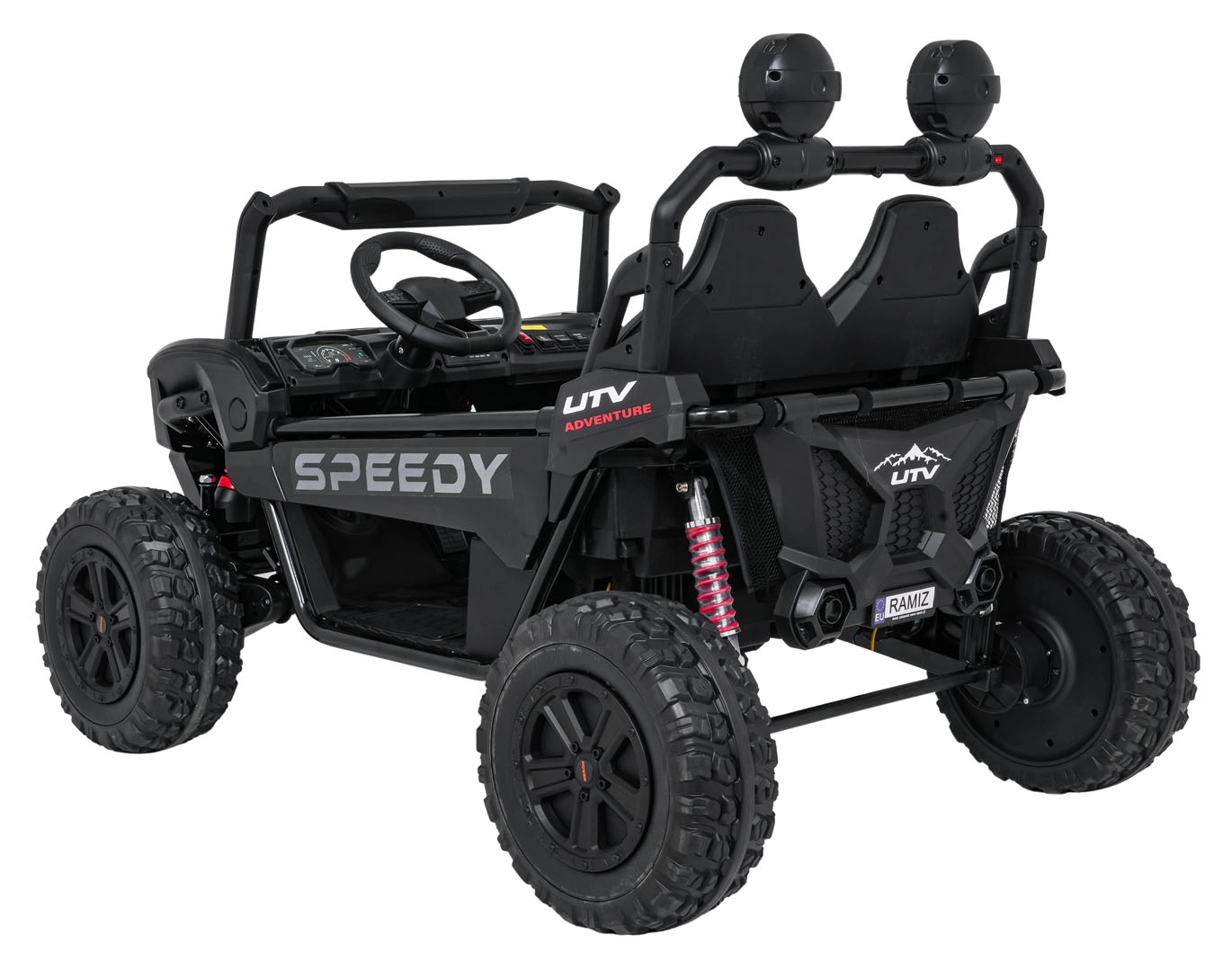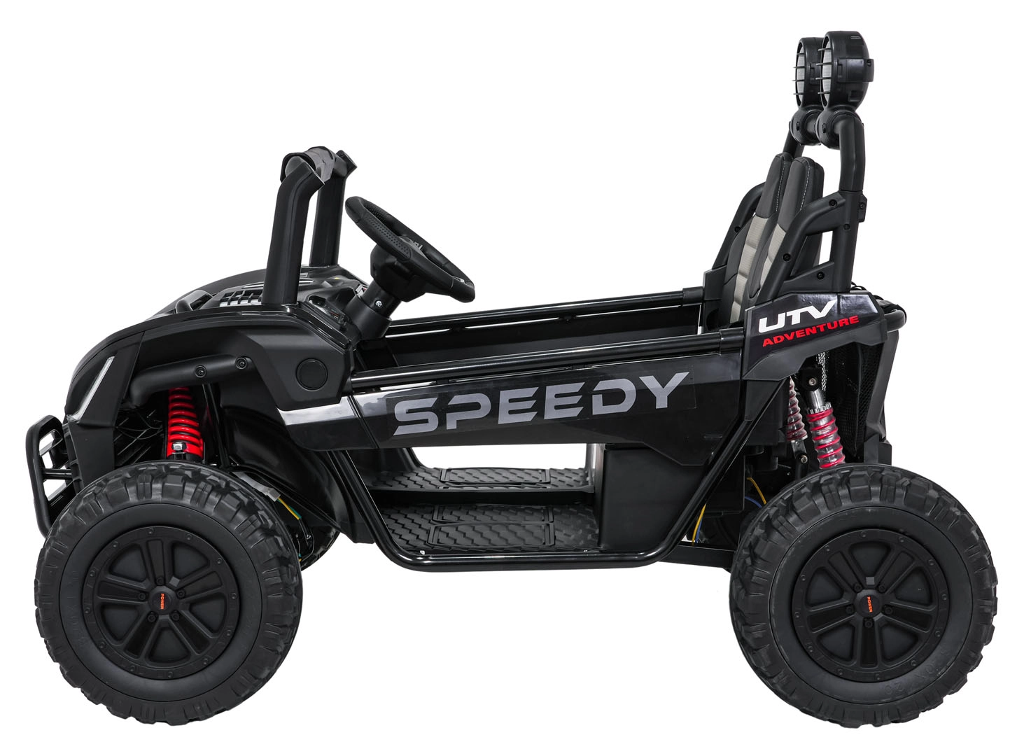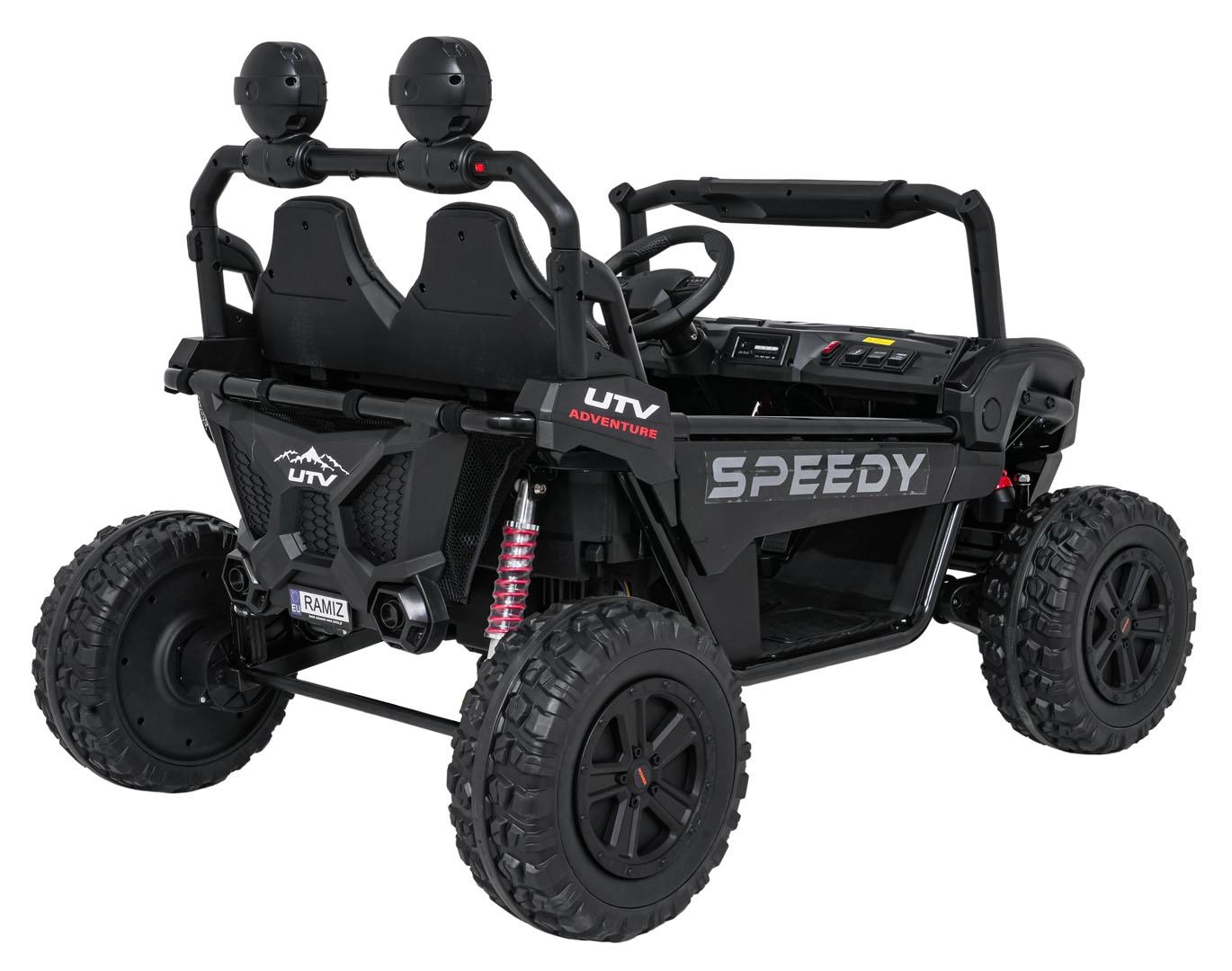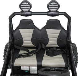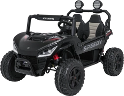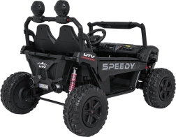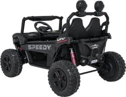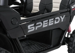 Szukasz wytrzymałego i bezpiecznego pojazdu dla dzieci, który poradzi sobie także w trudniejszym terenie? Ta buggy SPEEDY 4x4 wyróżnia się połączeniem mocy i komfortu: cztery silniki 200 W (łącznie 800 W) w układzie 24 V, duże piankowe koła EVA 31×12 cm, wysoki prześwit 19 cm oraz tylne regulowane amortyzatory dla płynnej jazdy. Dwa siedzenia z pasami bezpieczeństwa pomieszczą rodzeństwo lub kolegę.