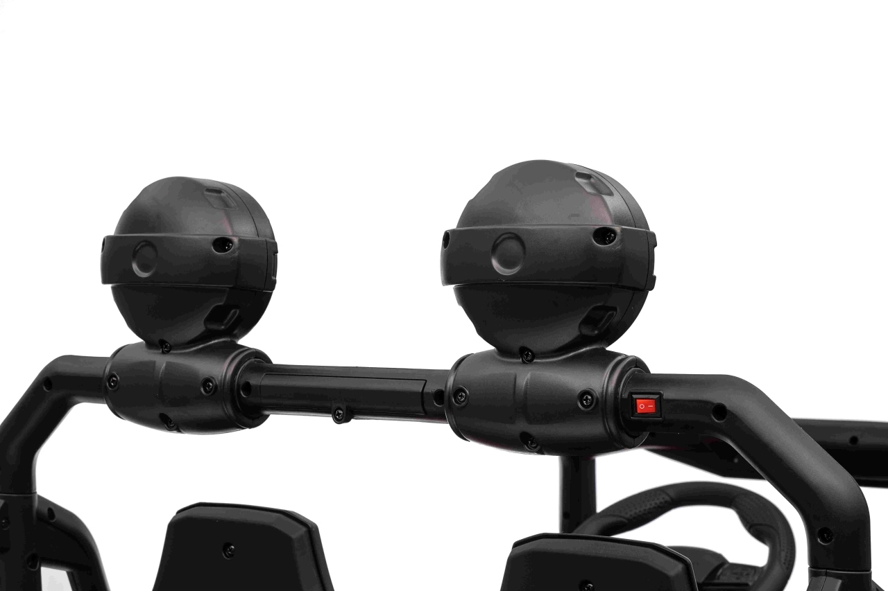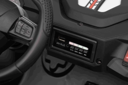 Auto jest wyposażone w nowoczesne sterowanie za pomocą pilota 2,4 GHz, który umożliwia wybór spośród 3 prędkości i posiada przycisk awaryjnego zatrzymania. Dodatkowo auto ma piankowe koła EVA oraz regulowane tylne amortyzatory dla komfortowej jazdy. W wyposażeniu znajduje się także panel audio z możliwością podłączenia MP3, USB lub Bluetooth.