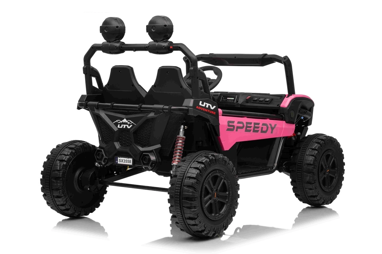 Elektryczne auto Buggy SPEEDY 4x4 zostało zaprojektowane tak, aby dostarczać zabawy i radości każdemu małemu kierowcy. Pojazd ma mocny silnik 4x200W, który umożliwia łatwą jazdę także po nierównym terenie. Dzięki pojemnemu akumulatorowi 24V zapewniona jest długa jazda bez przerw.