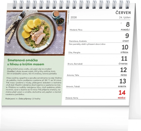 Zanurz się w bogactwie tradycyjnej czeskiej kuchni dzięki naszemu kalendarzowi biurkowemu na rok 2026. Ten kalendarz zawiera 53 starannie wyselekcjonowane przepisy, które co tydzień dostarczą Ci kulinarnej inspiracji.
