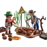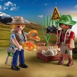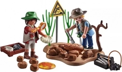Odkryj dawne tajemnice z ekscytującym zestawem PLAYMOBIL wykopaliska! Ukryj skamieniałości, takie jak amonity, trylobity i jaja dinozaurów w skałach i odkryj je ponownie za pomocą realistycznych narzędzi. Używając pędzli, młotka i lupy, dokładnie analizuj swoje znaleziska i bezpiecznie przechowuj je w drewnianej skrzyni. Dzięki dołączonemu aparatowi paleontolodzy mogą dokumentować każde ekscytujące odkrycie. Szczegółowo opracowana płyta bazowa z krzewami i gałęziami zachęca do nieskończonej, pomysłowej eksploracji. Z pełnym miłości wzornictwem PLAYMOBIL każde wykopalisko staje się przygodą w przeszłość!
