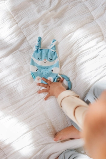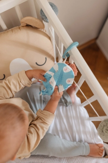 Zawieszana zabawka Króliczek to idealny towarzysz dla twojego maluszka, wykonany w Czechach z miłością i na uczciwych warunkach, z certyfikatem dla dzieci od 0 lat.