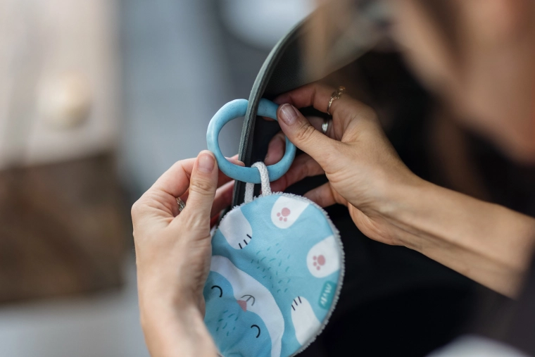 Pielęgnacja zabawki jest prosta. Przed pierwszym użyciem zalecamy wypranie bez kółka. Jeśli kółko się zużyje, łatwo je wymienisz na nowe. Nie prasuj zabawki i nie susz w suszarce bębnowej. Drobne uszkodzenia nadruku są normalne i nie są uważane za wady.