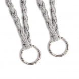 Szare zawieszone siedzisko z konstrukcją w kształcie gniazda zamieni twój ogrodowy kącik w spokojne miejsce do odpoczynku. Dzięki poduszce, która jest częścią zestawu, możesz wygodnie oprzeć plecy o metalowy krąg. Huśtawka jest stabilna i pozwala siedzieć zarówno prosto, jak i wygodnie w pozycji tureckiej.
