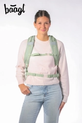 Plecak posiada regulowane szelki z delikatną siateczką chroniącą kark oraz odpinany pas biodrowy. Został wyposażony w specjalne usztywnienie z pianki EVA dla idealnego trzymania kształtu oraz wzmocnioną rączkę zwiększającą nośność do 8 kg.