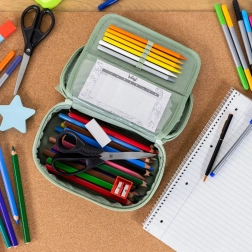 Piórnik szkolny Etue Mentol jest przestronny z podwójną klapką i wewnętrzną kieszenią. Materiał jest trwały, z recyklingu, a zamki YKK zapewniają doskonałą wytrzymałość. Worek na obuwie wykonany z trwałego, zmywalnego materiału, ze ściągaczem z mocnych sznurków dla wygodnego noszenia na plecach.