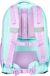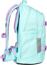 Szkolny plecak Skate Max Sweet wykonano z materiału z recyklingu, wodoodpornego, który gwarantuje bezpieczeństwo i trwałość. Wyposażony jest w odpinany pas biodrowy, a specjalne wzmocnienie z pianki EVA utrzymuje jego kształt. Wzmocniona rączka plecaka zwiększa nośność do 8 kg. Plecak jest dostosowany do dzieci o wzroście 155–185 cm, co odpowiada uczniom od 3. klasy.