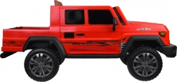 Duży elektryczny samochód dziecięcy typu pickup oferuje jazdę dla dwojga dzieci, mocny napęd 4x4, akumulator 24V 8Ah oraz silniki 4 × 24V 100 W. Ma otwierane drzwi, miękkie koła EVA z tylnymi amortyzatorami, komfortowe siedzisko z ekoskóry z paskiem oraz przestronną pakę z uchylną burtą. Płynny start, hamulec elektryczny i rozbudowany panel multimedialny zapewniają bezpieczną i świetną zabawę podczas jazdy.