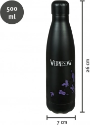 Termos 500 ml z motywem Wednesday utrzymuje twoje napoje ciepłe lub zimne przez długi czas. Idealny kompaktowy rozmiar jest świetny do każdej torby.
