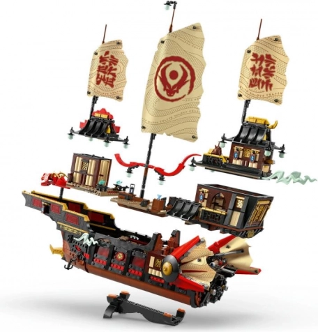 W zestawie znajduje się 6 minifigurek z ninjańską bronią oraz specjalnym ostrzem do ujawniania tajnej mapy na kapitańskim stole.