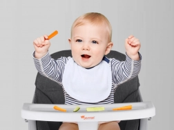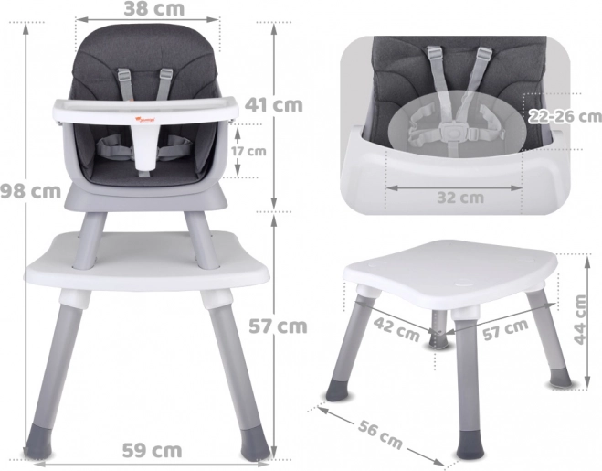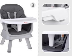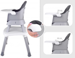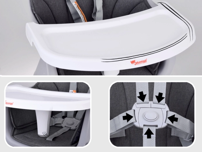 - Krzesełko do karmienia z tacką – idealne do samodzielnego jedzenia, z wyjmowaną i łatwą w czyszczeniu tacką.