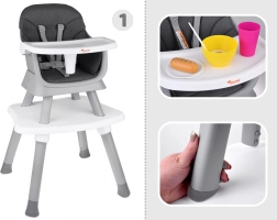 Wielofunkcyjne krzesełko do karmienia 6w1 to idealne rozwiązanie dla rodziców szukających praktycznego i stylowego wyposażenia, które dostosowuje się do zmieniających się potrzeb dziecka. Od krzesełka do samodzielnego jedzenia, przez dziecięcy stołeczek, aż po kompletny zestaw stolik + krzesełko do zabawy i nauki.