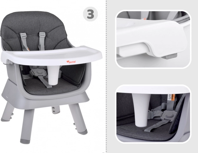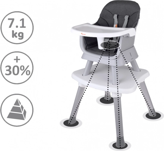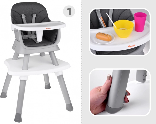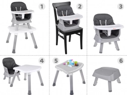 Odkryj wielofunkcyjne krzesełko do karmienia 6w1, które rośnie razem z Twoim dzieckiem! Odpowiednie od 6. miesiąca życia, z ergonomicznym i bezpiecznym projektem, który świetnie pasuje do każdego wnętrza.