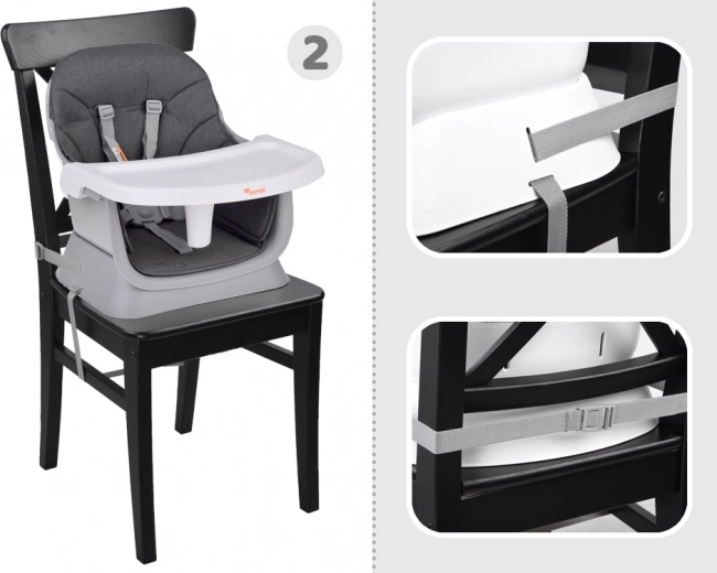 - Nakładka na krzesło przy stole – dzięki pasom mocującym i antypoślizgowym nóżkom bezpiecznie przymocujesz do dowolnego krzesła.