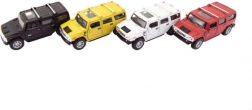 Stylowy model terenowego Hummera H2 marki Kinsmart ucieszy dzieci i kolekcjonerów. Łączy metalowe i plastikowe elementy, ma napęd typu pull-back, często również otwierane drzwi oraz długość 12 cm. Dostępny w 4 wersjach kolorystycznych i odpowiedni od 3 lat.