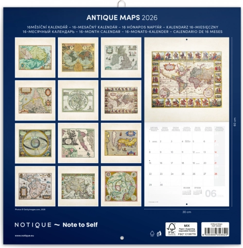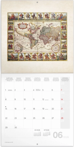 Kalendarz notatkowy Stare mapy 2026 oferuje dwanaście ilustracji starych map i jest idealnym towarzyszem do planowania. Ten praktyczny kalendarz powstał z myślą o ekologii, wchodzi w skład kolekcji Plastic Free.