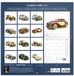 Ciesz się dwunastoma unikalnymi rysunkami historycznych samochodów autorstwa światowej sławy Václava Zapadlika. Ten kalendarz to idealny wybór dla kolekcjonerów i miłośników klasyków.