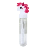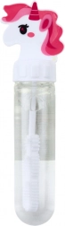 Dzieci pokochają puszczanie baniek z wesołym jednorożcem. Ta zabawka nie tylko bawi, ale także zachęca do ruchu na dworze. Obudowa w kształcie jednorożca ma małe kółeczko, przez które można przewlec sznureczek lub pasek, dzięki czemu dzieci mogą mieć bańki zawsze przy sobie.