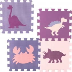 Puzzle izolują od chłodu podłogi i doskonale amortyzują upadki, co czyni je idealnym miejscem do raczkowania, zabawy i nauki chodzenia. Antypoślizgowa struktura zapewnia, że dziecko może bezpiecznie bawić się zarówno w pokoju, jak i na tarasie. Odcienie różu, fioletu i turkusu nadają macie nowoczesny wygląd i stylowy akcent do pokoju dziecięcego.