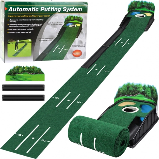 Mata do golfa posiada automatyczny powrót piłki, co zwiększa płynność treningu i eliminuje konieczność ciągłego chodzenia po piłki. Mata ma trzy strefy dołków o różnym stopniu trudności, dzięki czemu ćwiczenia są urozmaicone i wymagające.
