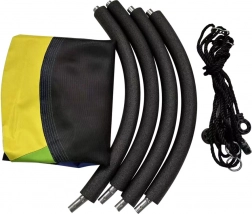 Liny z grubego polietylenu są wyposażone w metalowe pierścienie i system regulacji wysokości, co umożliwia łatwe dopasowanie huśtawki do potrzeb dziecka i dostępnej przestrzeni. Dzięki możliwości jednego lub dwóch punktów zawieszenia, huśtawka nie tylko buja się do przodu i do tyłu, ale także może obracać się wokół własnej osi.