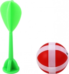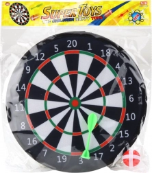 W skład zestawu wchodzi ciemna tarcza o średnicy 28 cm, jedna rzutka i jedna piłka, obie z końcówką na rzep. Tarcza ma czytelną numerację i kolorowe strefy, które nie tylko ułatwiają naukę i poprawiają refleksy, ale także sprawdzają się przy grze wewnątrz i na zewnątrz.
