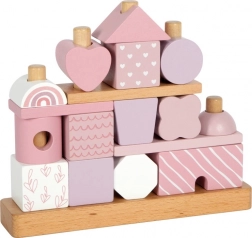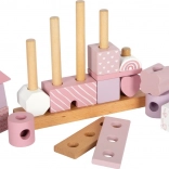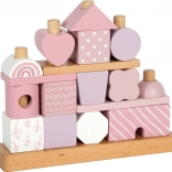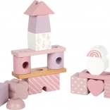 Ten piękny domek z drewnianymi elementami ucieszy każdego małego budowniczego. Delikatne pastelowe odcienie wraz z naturalnymi akcentami dodają estetyki, a różnorodność kształtów i wzorów umożliwia nieskończoną zmienność zabawy. Dzięki zaokrąglonym krawędziom jest odpowiedni także dla najmłodszych dzieci i wspiera rozwój ich małej motoryki oraz koordynacji ręka-oko.
