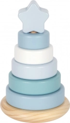 Odkryj magię układania z tą drewnianą wieżą marki Small Foot. W delikatnych pastelowych odcieniach niebieskiego i naturalnego drewna zapewnia nie tylko zabawę, ale też naukę. Dzieci ćwiczą motorykę oraz postrzeganie wielkości.
